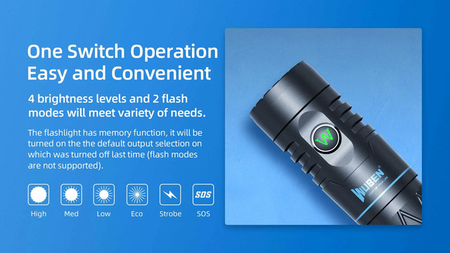 - Чотири рівні яскравості та два спеціальні режими, що задовольнять різні потреби користувача.