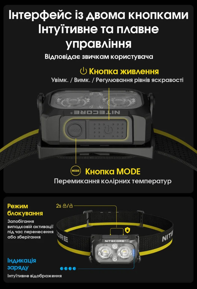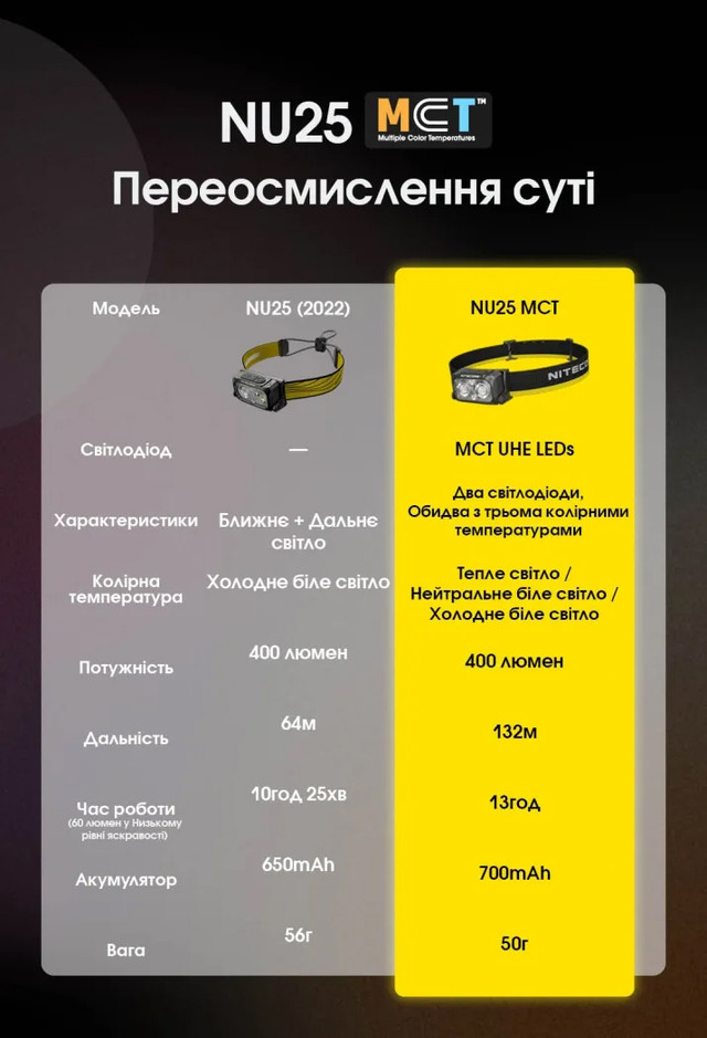 - Налобний ліхтар Nitecore NU25 MCT