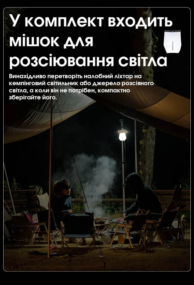 - Заряджання: через Type-C розʼєм у корпусі ліхтаря